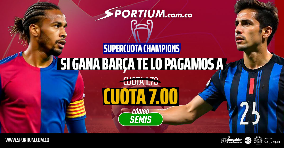 Si te gusta apostar en los grandes eventos de fútbol, esta oferta es para vos. Porque Sportium lanzó en Colombia una Supercuota para el partido Barcelona vs Inter por la ida de las semifinales de la Champions League. ¡Cuota de 7.00 para el triunfo de Barcelona!