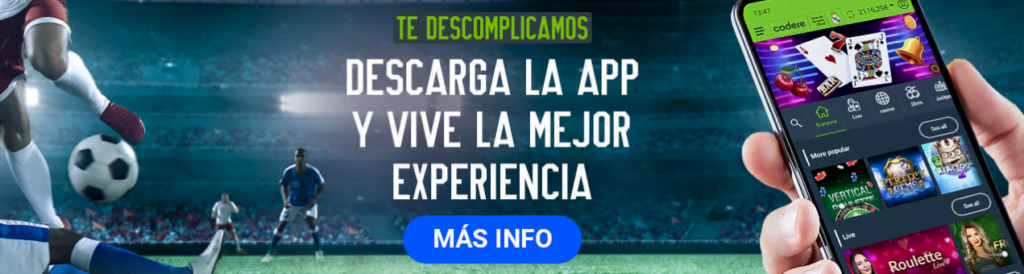 ¿Quieres jugar a cualquiera de las slots de Codere y hacer apuestas deportivas desde cualquier lugar? Si es así, te recomendamos que descargues la aplicación para móviles de Codere (Android e iOS). Con ella, podrás jugar a cualquiera de las slots, jackpots y Ruletas en Vivo, así como hacer apuestas deportivas, disfrutar del mejor streaming, realizar depósitos y retiradas mediante cualquiera de las formas de pago aceptadas (Bizum entre ellas) y acceder a las promociones en el momento que cumplas con las condiciones legales.