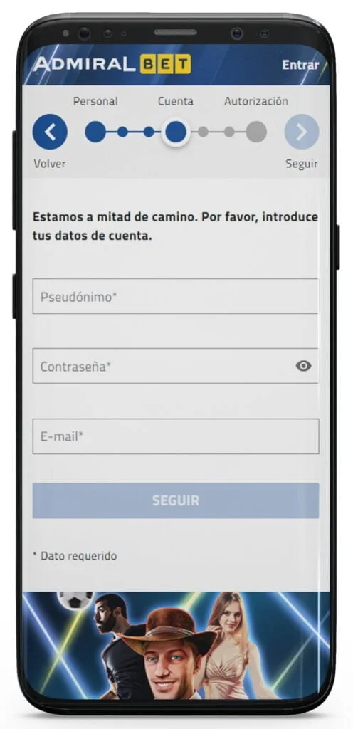 ¿Cómo creamos una cuenta en AdmiralBet desde el móvil?