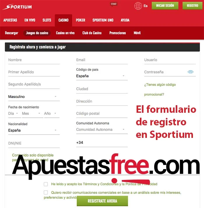 Ta solo podrás jugar en Sportium si eres cliente registrado, por lo que tendrás que completar el proceso de registro.