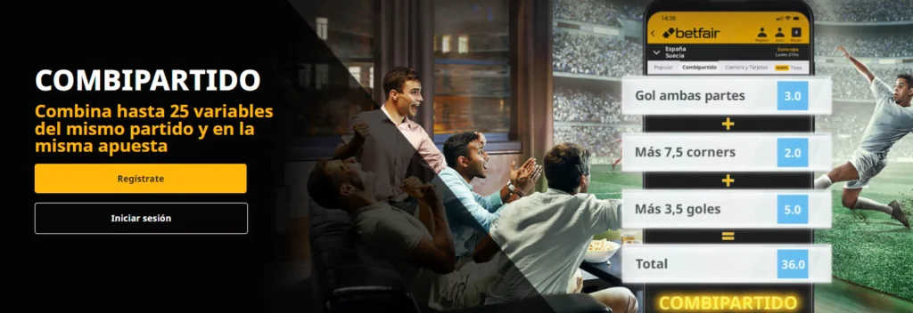 Betfair es una de las casas de apuestas más grandes del Mundo y eso se puede comprobar en la cantidad de mercados que se encuentran disponibles en grandes eventos. En cuanto a sus cuotas, decirte que se trata de la opción ideal si lo que te gusta es apostar a corners. Otro de sus puntos fuertes es Combipartido, función con la que podremos combinar las cuotas de nada menos que hasta 25 mercados del mismo partido y con la que se pueden generar cuotas realmente interesantes.