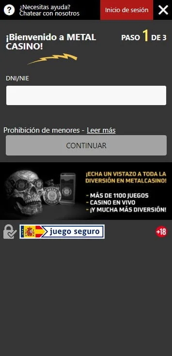 Sabiendo que puedes descargar la app de Metal Casino en tu móvil si usas iOS, pero no si eres usuario de Android, los pasos para crear una cuenta desde tu móvil son los siguientes: