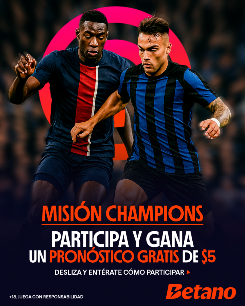Completa la Misión de Betano y gana una Apuesta Gratis de $5 para aprovechar en la Final de la Champions League entre Inter y PSG. ¡Descubre como hacer para ganar!