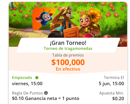 En esta ocasión queremos invitarte a participar del Gran Torneo de Betsson y así ponerte en carrera por la bolsa de premios de $100.000. Además, solo necesitarás jugar en los juegos seleccionados por el sitio de Betsson Ecuador para ser parte de la Promoción. ¡Juega ya en Betsson y gana recompensas!