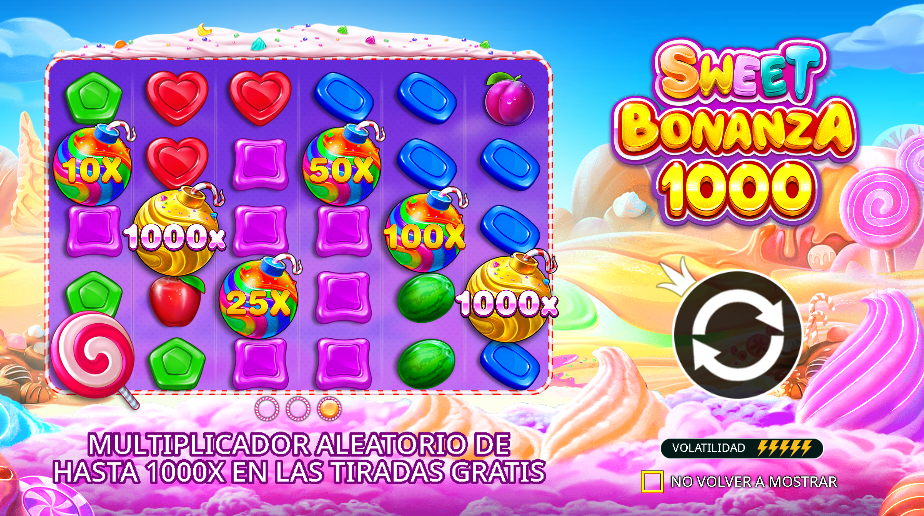 Sweet Bonanza 1.000 tiene una disposición de 6 carretes y 5 filas, con la particularidad de no funcionar bajo líneas de pago de tragamonedas. En cambio, funciona con la modalidad de pago en cualquier lado, a partir de 8 símbolos iguales.