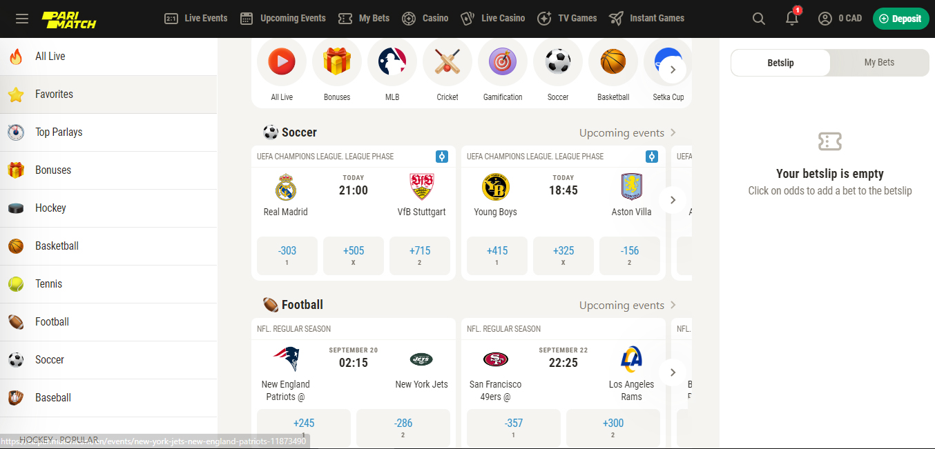 Betting on NHL and NFL with Parimatch Canada Bonus