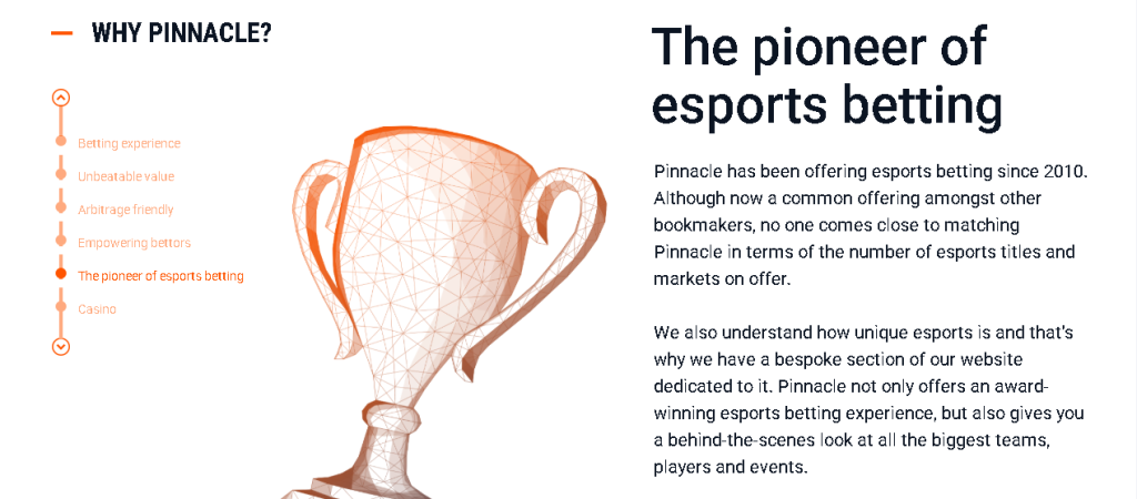 On the other hand, Pinnacle stands out for eSports betting. It is a pioneer site and has more titles and markets than the rest of the bookmakers. If you’re looking to make predictions on eSports, then Pinnacle is a fantastic option.