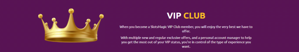 The VIP program at SlotsMagic rewards loyal players with a variety of perks including exclusive games and services, and personal VIP managers. Players earn points as they play, which can be converted into -cash or other gifts. The more you play, the higher your VIP level and the better the rewards.