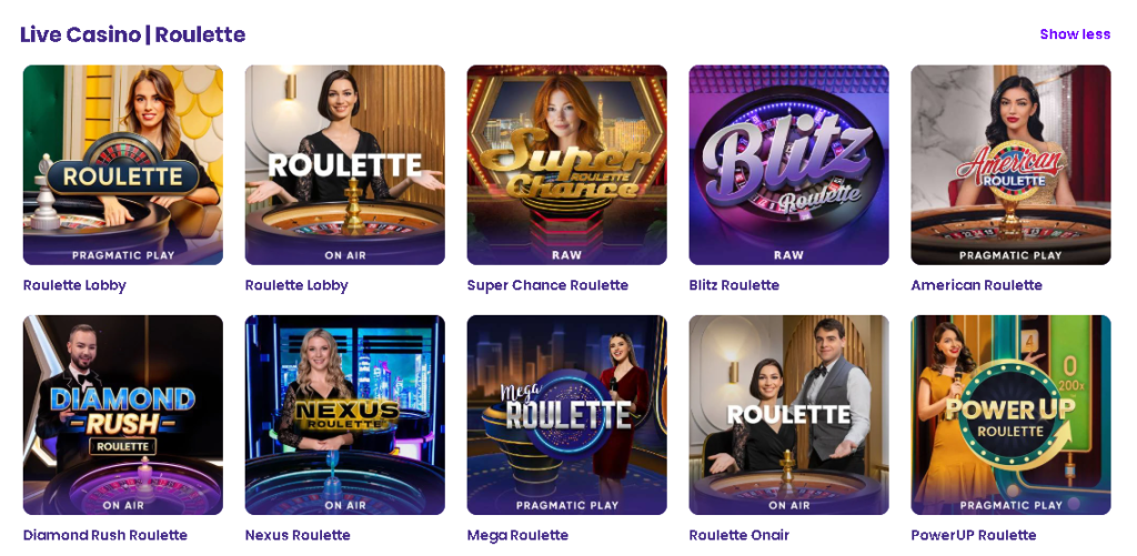 Vous pouvez également profiter de jeux de table comme le blackjack, le baccarat et le poker chez Wildz. Là où non seulement la chance entre en jeu, mais aussi la capacité de chacun au moment de jouer. Cela vous donne un meilleur contrôle et vous permet de compter sur vous-même.