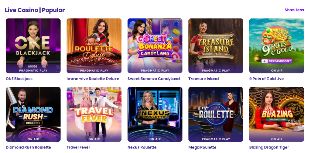 There is even a live casino section, where you can play in front of real croupiers that broadcast from a casino room. A real gaming experience, where you can also interact with other players. You don’t go to the casino, now the casino goes to you.