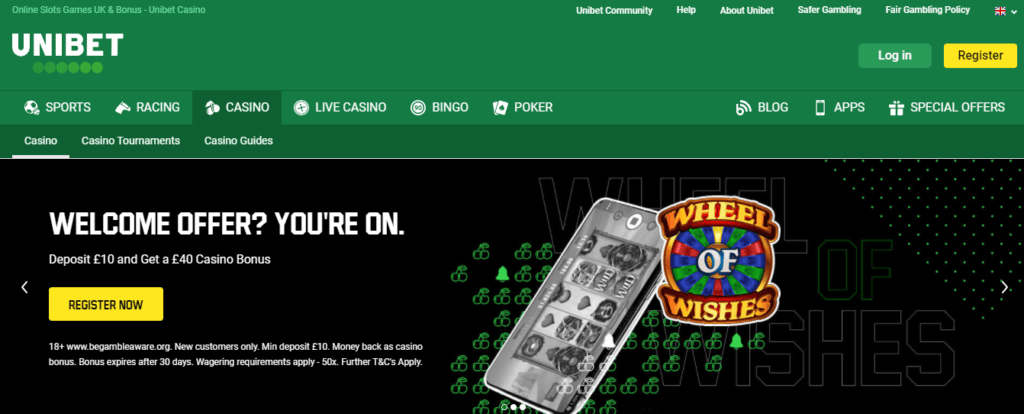 Unibet has launched an excellent Casino Welcome Bonus, with which you can play Roulette, Slots, Card Games and much more. As a result of this offer, you can get an extra £40 in bonus money just for making a first deposit of £10 or more.