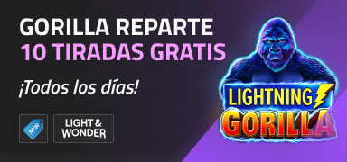 Luckia cuenta con un casino en el que podemos disfrutar de más de 3.000 slots y una de las que están brillando con luz propia es Lightning Gorilla, lo que ha llevado al operador a lanzar una promoción que no puedes dejar pasar, ya que te regalan nada menos que 10 tiradas gratis diarias en ella. ¿Quieres saber cómo aprovecharla? Si es así, quédate con nosotros, aquí te lo contamos.