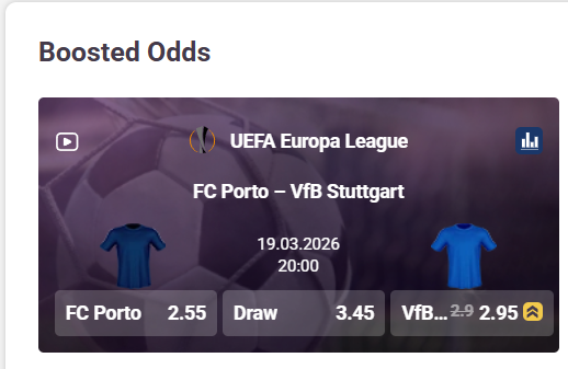 Take advantage of Tonybet boosted odds to maximise your UEFA Europa League bets for Porto vs Stuttgart. A top-flight football clash deserves the best place to enjoy it — join Tonybet today!…