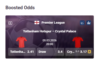 Take advantage of Tonybet boosted odds to maximise your Premier League bets for Tottenham vs Crystal Palace. A top-flight football clash deserves the best place to enjoy it — join Tonybet today!…