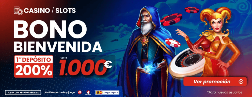 JOKERBET regala hasta 1.000€ a sus nuevos clientes con su bono de bienvenida de casino online. La web te bonifica al 200% tu primer depósito para que empieces a jugar con el triple de tu ingreso. Si por ejemplo depositas 500€, empezarás jugando con 1.500€ en total. No pierdas la oportunidad de empezar de la mejor forma posible. ¿Deseas más información? Lee ya nuestro análisis del Bono JOKERBET Casino.