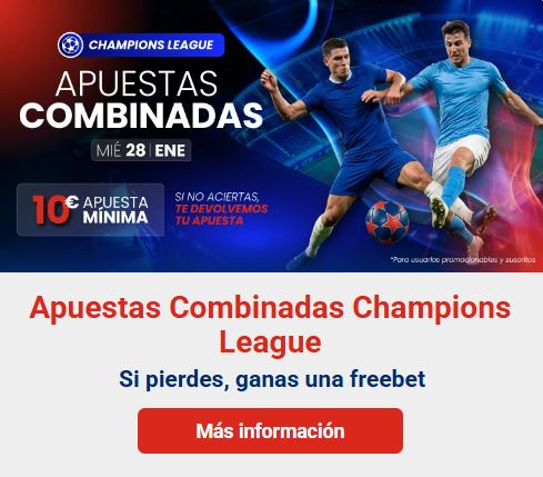 La promoción es válida exclusivamente para apuestas combinadas de la Champions League del 28 de enero.