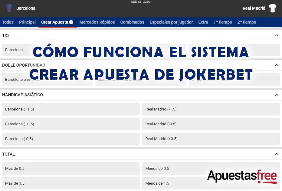 Crear Apuesta de JOKERBET es un sistema para realizar apuestas deportivas que está disponible en los principales eventos del momento. Por lo general, esta herramienta está más presente en los partidos de primer nivel de fútbol, por lo que cualquier encuentro de Liga, Premier League, Champions League o cualquier otra gran competición internacional estarán cubiertos por él.