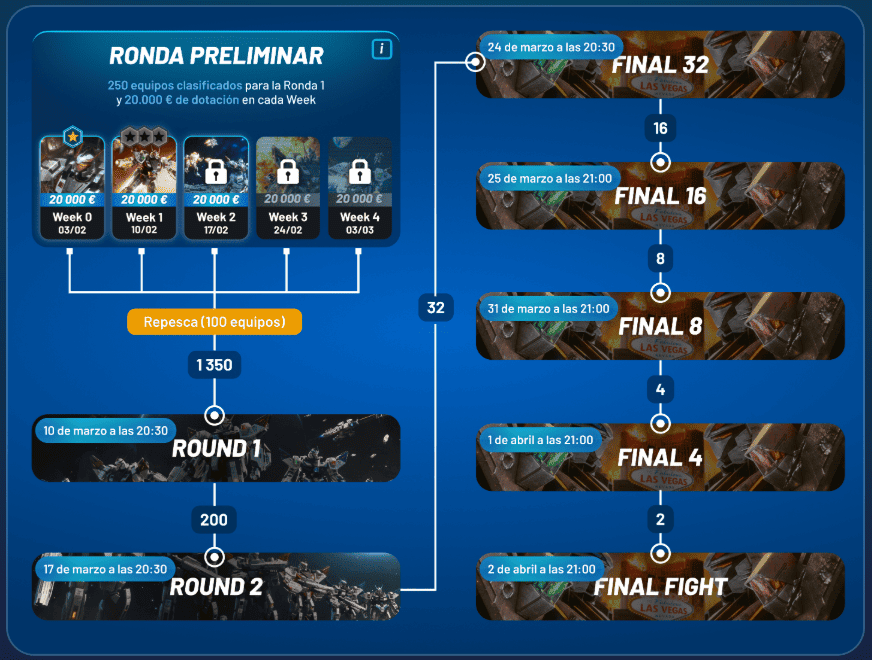 La primera fase se juega entre el 3 de febrero y el 3 de marzo, con torneos cada martes.