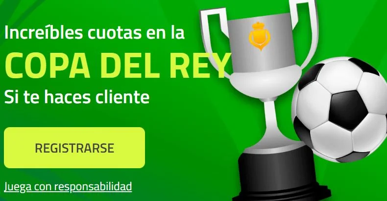 - Entra en el apartado de ‘Apuestas’ y Clica en Fútbol. Entra en Copa del Rey y pulsa en el Barcelona vs Real Madrid para encontrar todas las apuestas disponibles.