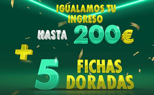 Oferta de nuevo cliente: Bonificación igualada al 100% + 5 fichas doradas