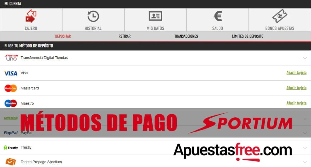 Métodos de pago en Sportium