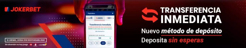 JOKERBET cuenta con una de las mejores casas de apuestas del momento y un casino online con más de 1.000 slots, algo que no es casualidad. Y es que, este operador no para de mejorar día a día para ofrecer el mejor trato posible a sus clientes registrados, por lo que no para de introducir mejoras constantemente, tanto en la interfaz de su web, como en su catálogo de juego y métodos de pago. Hoy, en ApuestasFree, vamos a hablarte sobre el nuevo método de pago que se encuentra disponible en JOKERBET: la Transferencia Inmediata. Con esta nueva forma de depósito podrás decir adiós a las esperas y centrarte en lo que realmente importa: jugar.