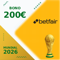 Uno de los bonos más interesantes de cara a las apuestas al Mundial 2026. Con él, por cada 5 apuestas de al menos 10€, te regalan una freebet de 20€, hasta una cantidad máxima de 200€. Una promoción realmente interesante para apostar a un torneo que dura un mes.