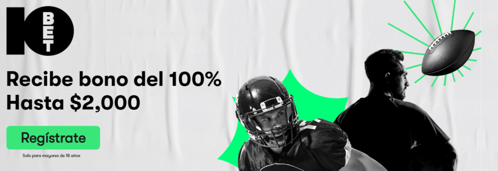Regístrate en 10bet, elige un bono de bienvenida, introduce el código promocional correspondiente durante tu primer depósito de al menos $100 MXN, y disfruta de tu bono en apuestas deportivas o juegos de casino.