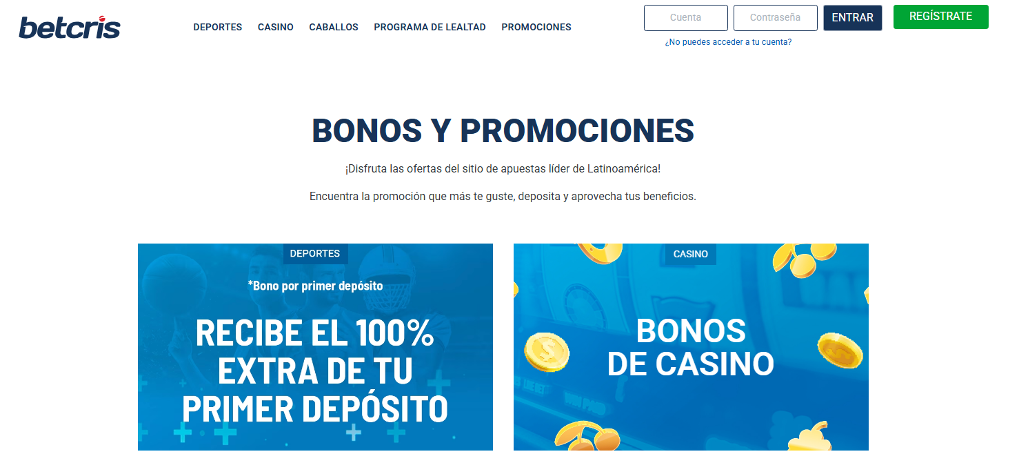 Una vez que la tengas allí, podrás hacer lo que desees. Desde registrarte, jugar o reclamar alguna de las promociones que la página tiene para sus jugadores. Obviamente para hacer los dos pasos finales, tendrás que estar registrado en Betcris. hazlo ahora mismo desde aquí.