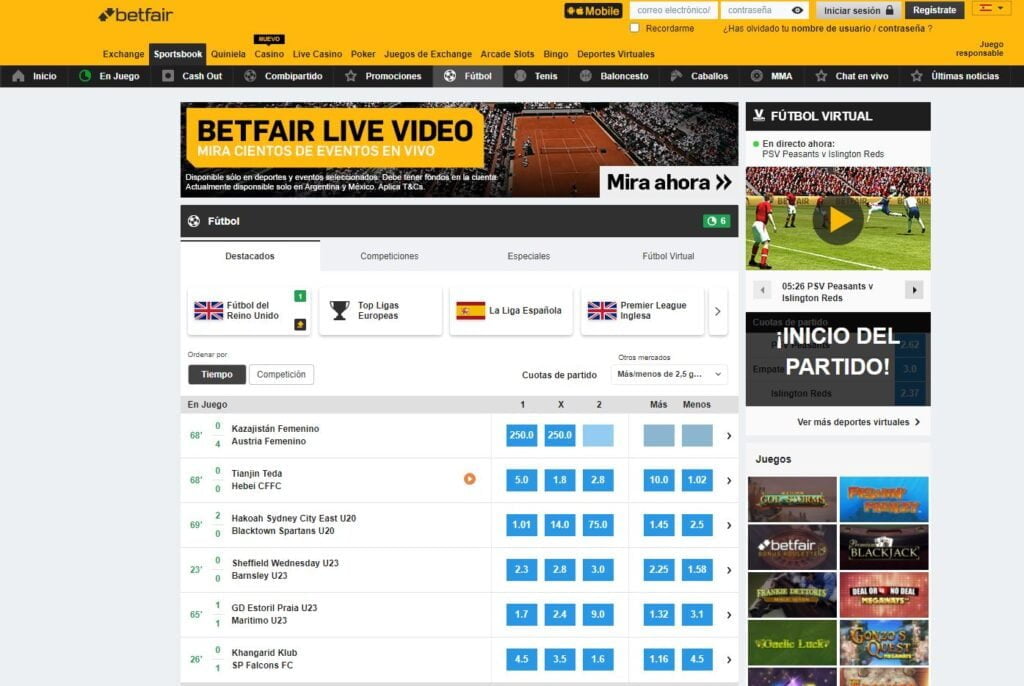 Betfair es una de las casas de apuestas más completas en cuanto a oferta de juego y que más posibilidades ofrece a sus clientes registrados. Y es que, hablamos de un operador que ofrece una enorme oferta de servicios, ya que cuenta con Combipartido, con la que podrás realizar combinadas a un mismo partido de nada menos que hasta 25 selecciones o Betfair TV para ver partidos en directo de algunos de los eventos que hay disponibles en Betfair.