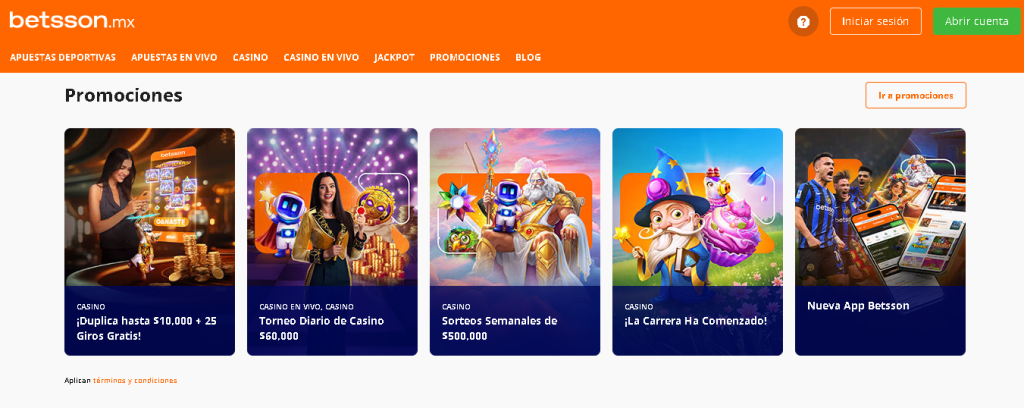 Si te gusta el casino o el casino e vivo, ya lo sabes: puedes sumar hasta $15.000 MXN + 200 Giros Gratis con el Bono de Bienvenida. Si quieres más detalles, tenemos un artículo exclusivo sobre el Bono de Betsson para Casino en Vivo.