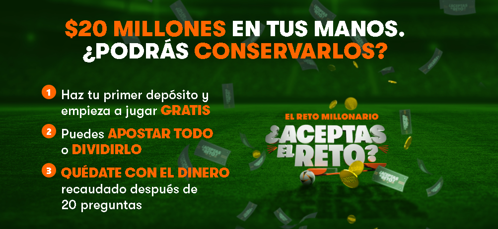 Estamos hablando de El Reto Millonario, precisamente un desafío que pone a prueba tus saberes. Y lo más atractivo de todo, es que no tienes nada que perder y todo por ganar. Porque Betsson te entrega 20 millones ¡Sí, 20 millones! y depende de ti si los conservas en su totalidad, una parte o nada.