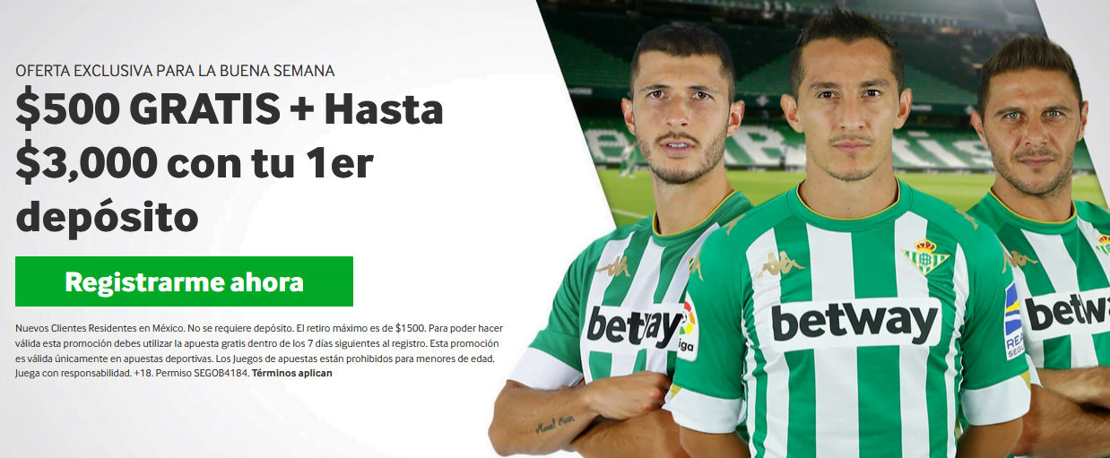Como íbamos diciendo, Betway México ha lanzado una promoción para nuevos clientes de deportes llamada El Buen Fin en la que recibe $500 gratis + $3,000 en Bono.