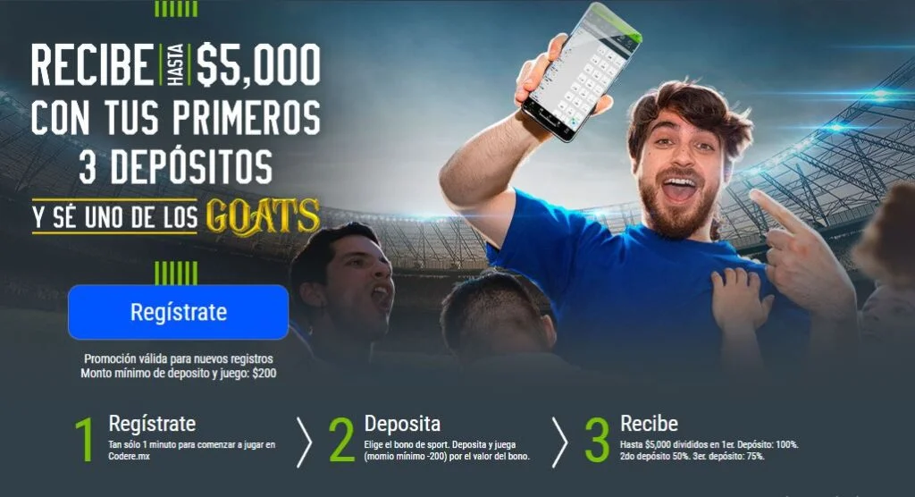 Si te suscribes en las próximas horas, podrás recibir una de las mejores ofertas de bienvenida del mercado. Codere cuenta con un nuevo bono de bienvenida de hasta $5,000 FD (Fondos Disponibles) en los tres primeros depósitos. ¡Solicita el tuyo y conéctate a la diversión!
