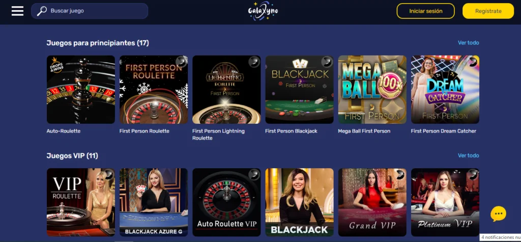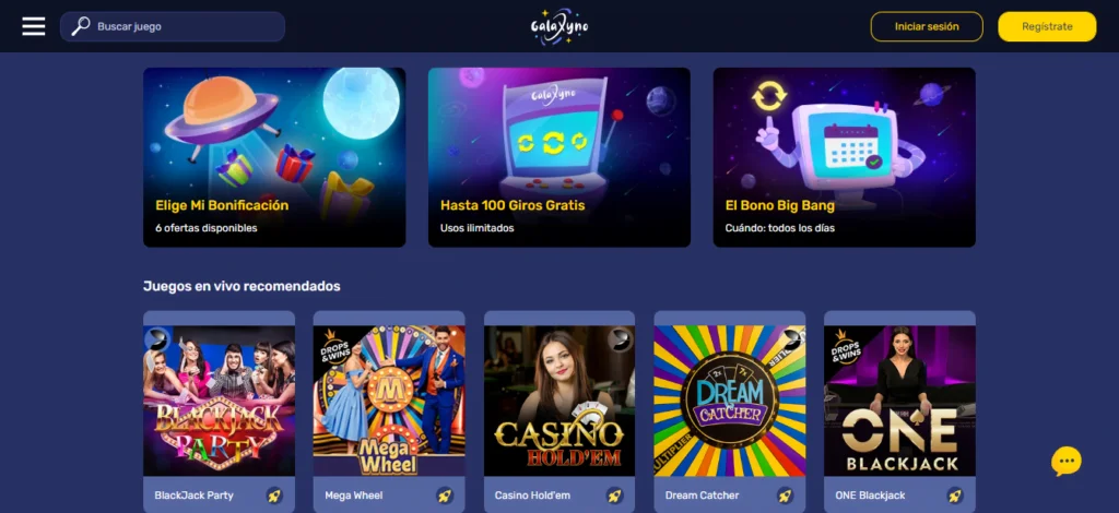 Por el momento en Galaxyno solo podrás disfrutar de sus juegos del casino online y también de su casino en vivo. No cuenta por ahora con apuestas deportivas para hacer.