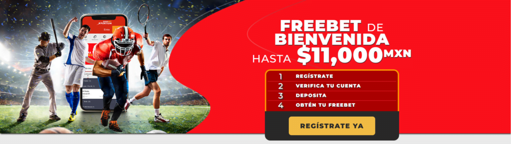 - Bono de bienvenida de apuestas de Sportiumbet del 100% de la primera apuesta si falla hasta $3.500MXN. La casa de apuestas devuelve tu primera fallida en forma de Freebet hasta un máximo de $3.500 MXN.