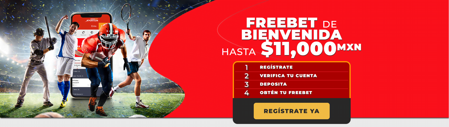 Han llegado a México las mejores promociones de Sportiumbet. Y esto es celebrado a lo grande, con una nueva bonificación en tus depósitos. Entonces, esta operadora ofrece ya un Bono de bienvenida en la apuestas, sobre tu primer depósito. Esta oferta consiste en el 100% EXTRA, sobre tu primer depósito y hasta $5.000 MXN + Freebet de hasta $500 MXN.