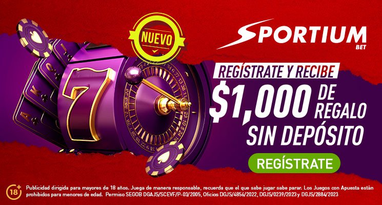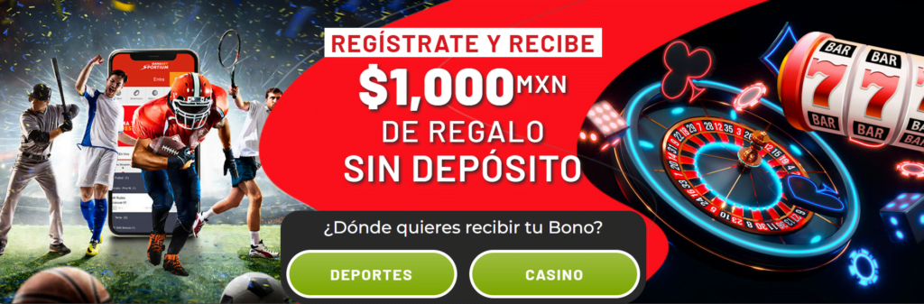 Además del bono sin depósito, en sportiumbet puedes solicitar un bono de bienvenida para casino y otro para deportes con tu primer depósito. El primero consiste en una bonificación del 100% hasta $5.000 MXN; mientras que el segundo es una apuesta gratis del 100% hasta $3.500 MXN. Ambas ofertas requieren un depósito mínimo de $500 MXN.