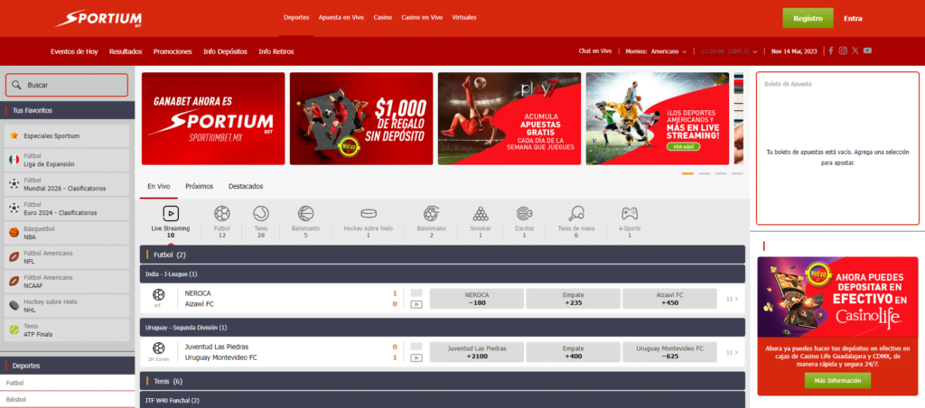 Sportiumbet cuenta con un destacado sector de apuestas deportivas, donde puedes probar suerte en la Liga Mx y otros torneos nacionales e internacionales. También puedes hacer tus predicciones en eventos de otras disciplinas o jugar los mejores juegos de casino.