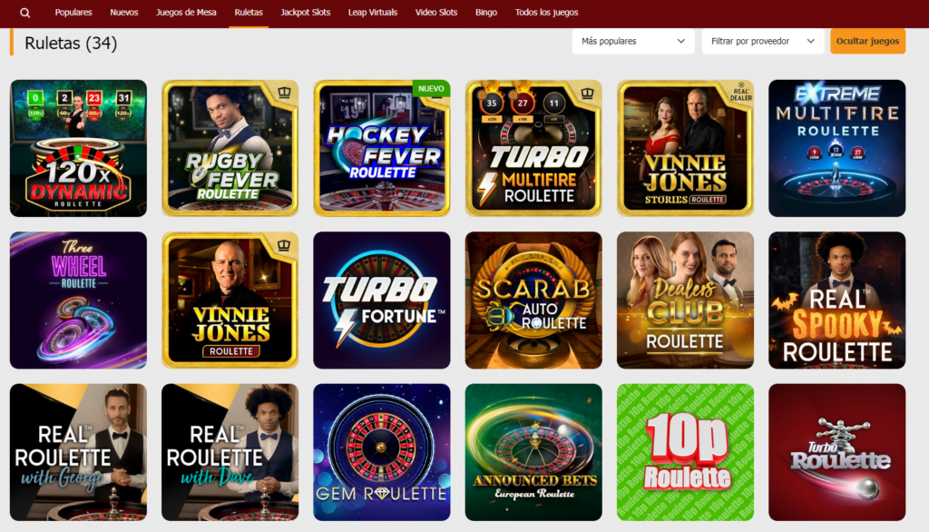 El casino de Sportiumbet también es alucinante. Accede a la pestaña y encuentra Jackpot Slots, Juegos de Mesa, Ruletas, EGT, Playson, Leap, Leap Virtuals, Video Slots y bingo. Todas estas opciones conforman un total de 1127 juegos imperdibles. El sector de casino en vivo cuenta con mesas de bacará, blackjack, ruletas, juegos de concurso y BetGames con los crupier más simpáticos y amigables. ¡Conócelos!