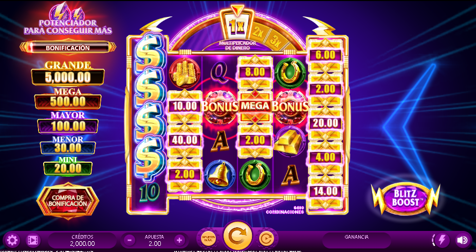 - Blitz Boost y Bonus Buy: la opción de Bonus Buy permite acceso instantáneo a la ronda de bonificación de Giros Gratis, ofreciendo diferentes configuraciones. Por su parte, el Blitz Boost aumenta la frecuencia de aparición de símbolos especiales.
