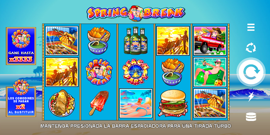 El símbolo del logotipo de Spring Break es el que duplica las ganancias cuando se forma una combinación ganadora, además de sustituir cualquier símbolo (menos scatter).