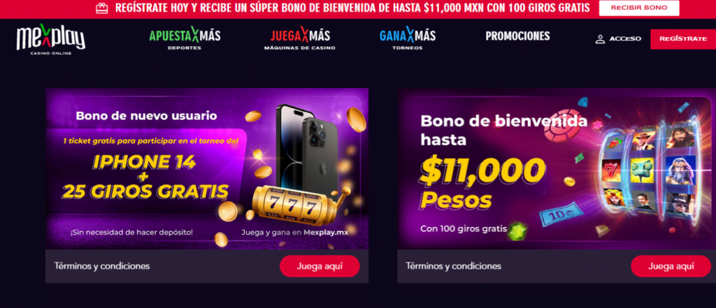 ¿Sabías que MexPlay tiene uno de los mejores bonos de bienvenida para casino? Descubre cómo conseguir $11.000 MXN de bienvenida para divertirte en tus juegos favoritos ¡Abre tu cuenta con el bono ahora!
