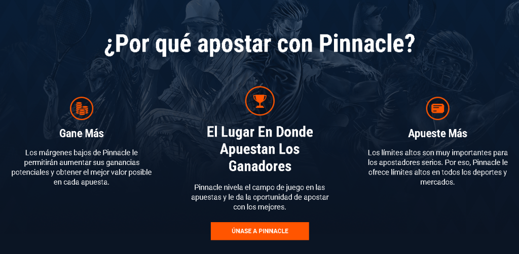 Si bien más adelante lo contaremos con más detalle, algunos de los beneficios que encontrarás en Pinnacle son márgenes bajos para aumentar las ganancias y límites altos para los apostadores más serios. Además de la amplia cobertura de eventos y de una trayectoria que ya supera los 20 años.