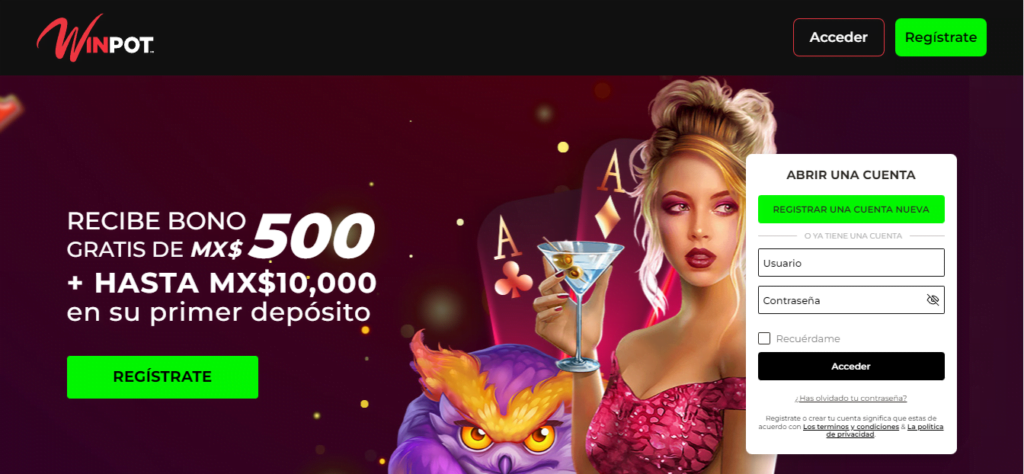 Para aquellos amantes de casino, y por sobre todo amantes de los casino en línea, les traemos una gran oportunidad, dentro de uno delos sitios líder en México. Claramente te estamos hablando de Winpot, un sitio de apuestas en el cual vas a encontrar grandes beneficios. En esta ocasión te explicaremos como acceder al bono para casino de Winpot, con el cual podrás obtener $500 completamente gratis + un 100% de tu primer ingreso hasta $10.000. Este increíble beneficio, solamente estará disponible para todos aquellos que sean nuevos usuarios de este sitio. Es tu momento de conocer y registrarte en Winpot.