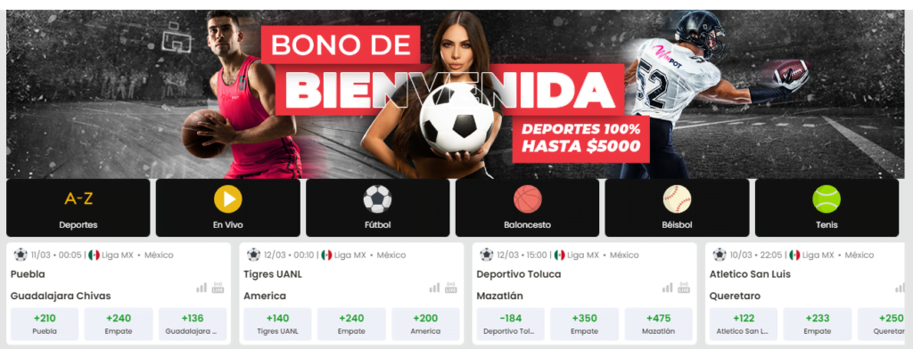 El mercado de deportes es mundialmente conocido y podrás apostar en fútbol, tenis, baloncesto, NBA, NFL, Hockey sobre hielo y una gran cantidad de disciplinas que te estarán esperando. No puedes perderte la oportunidad además de utilizar un bono para apuestas deportivas además del bono para slots de winpot.