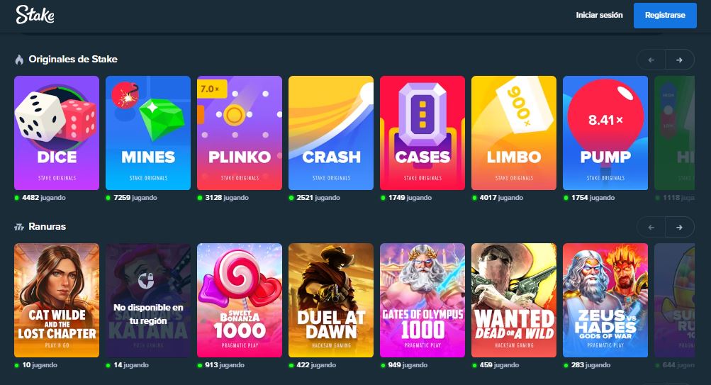Las tragamonedas son el corazón de Stake. Su impresionante selección abarca desde los clásicos de tres carretes hasta las video slots más modernas, con gráficos espectaculares y múltiples líneas de pago. Aquí puedes disfrutar de títulos de los mejores desarrolladores del mundo, con temas que van desde aventuras épicas y fantasía hasta referencias de la cultura popular.