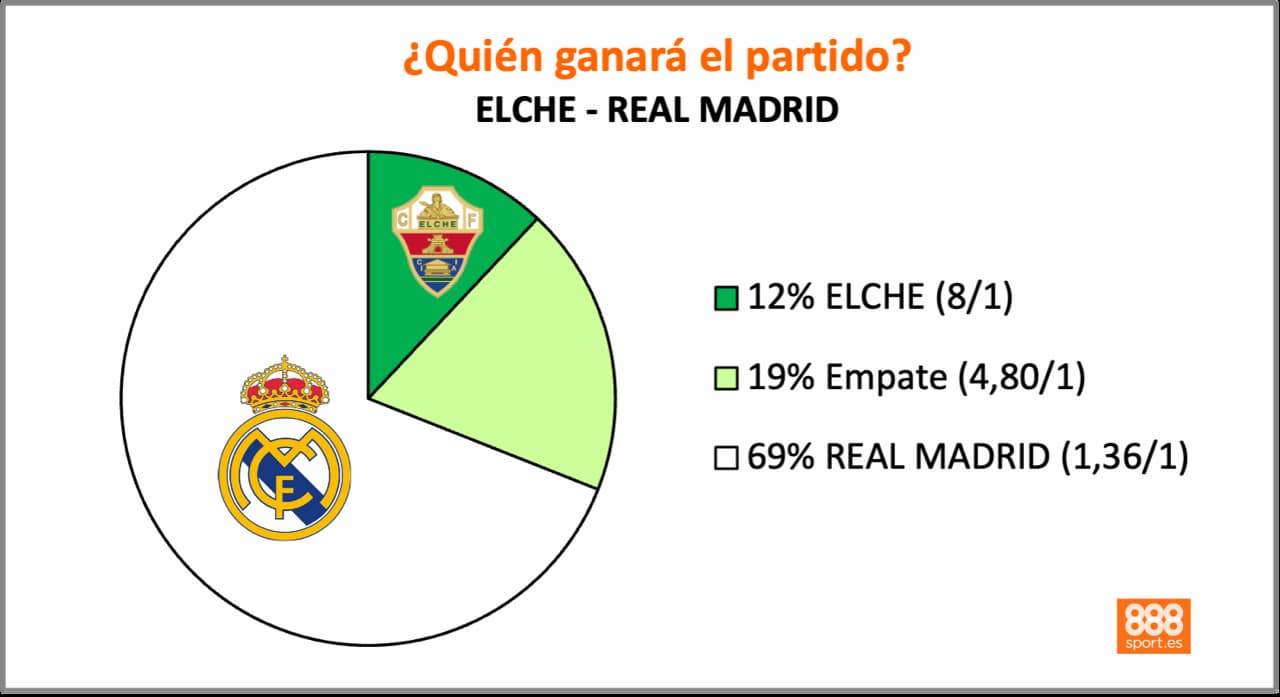 El 69% de los seguidores de 888sport apuesta que el Real Madrid ganará al Elche
