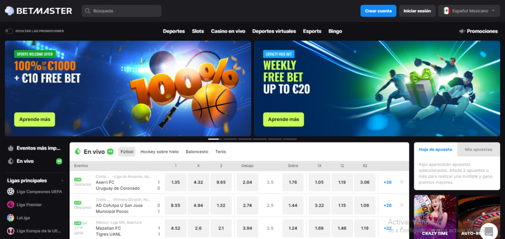 Para aquellos que se distraen con el mundo de las apuestas, en este sitio encontrarán los mejores sectores de apuestas. Todos y cada uno de ellos son completamente seguros, ya que Betmaster cumple con todas las licencias de apuestas. De esta forma, podrás realizar tus apuestas con total seguridad. Cuando entres en Betmaster, encontrarás apuestas deportivas, e-sports, deportes virtuales, casino y casino en vivo.