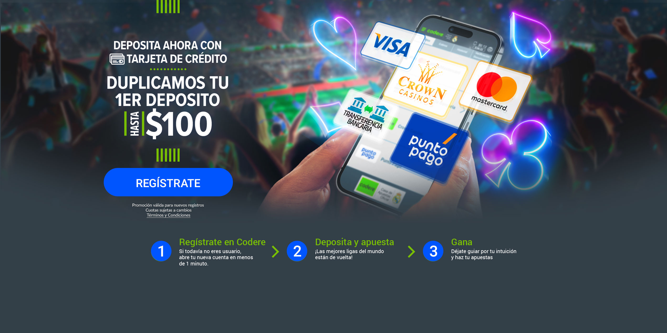 Antes de llegar al Bono de Codere que puedes disfrutar en apuestas combinadas, también consideramos oportuno que conozcas cuáles son los métodos de pago disponibles en Panamá.